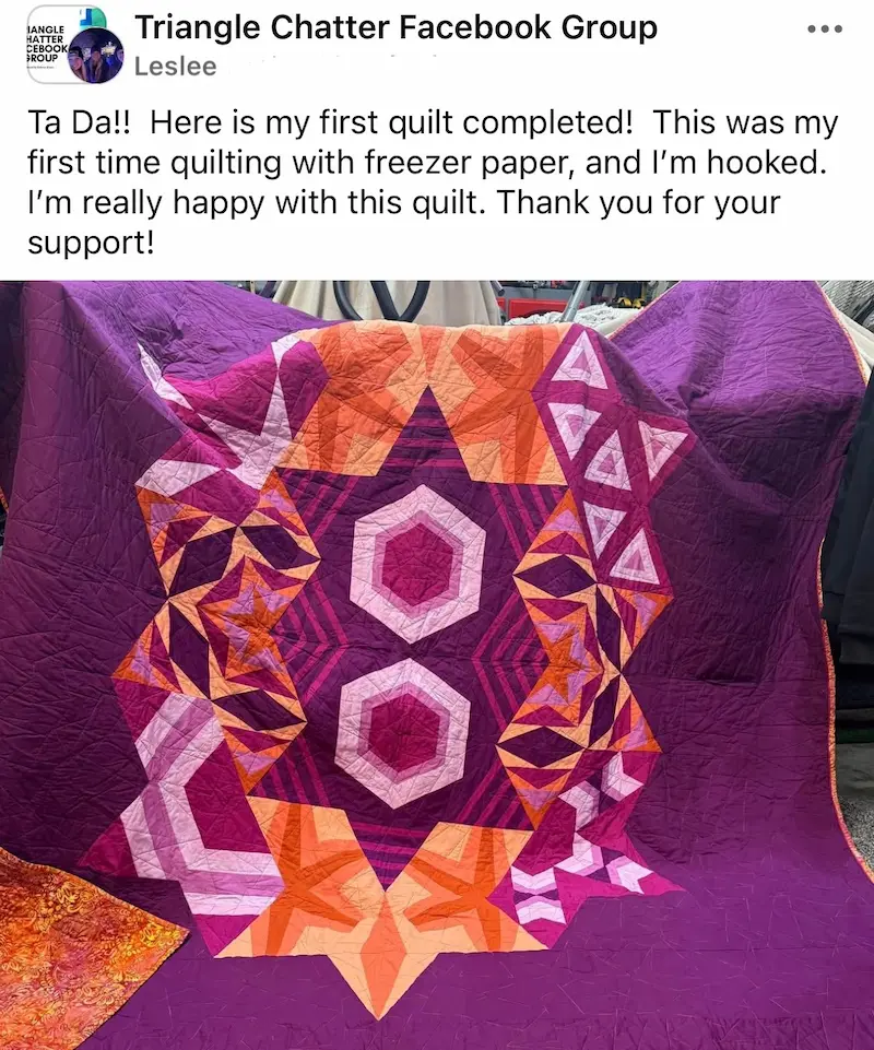 Thousands of quilters from all over the world are making Modern Triangles! Together we celebrate all the quilty moments from start to finish. Here's just a sampling of some of the BIG finishes!